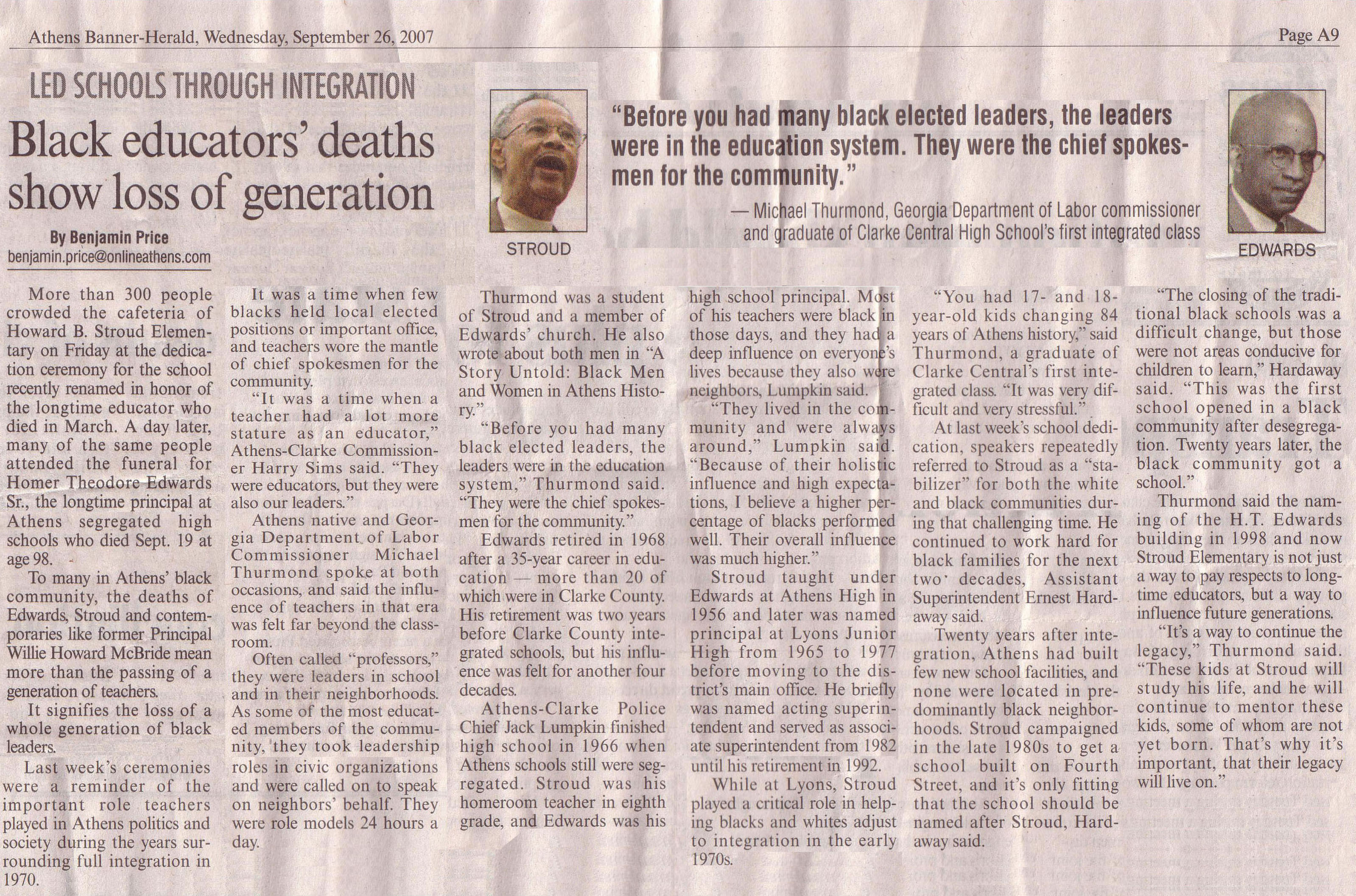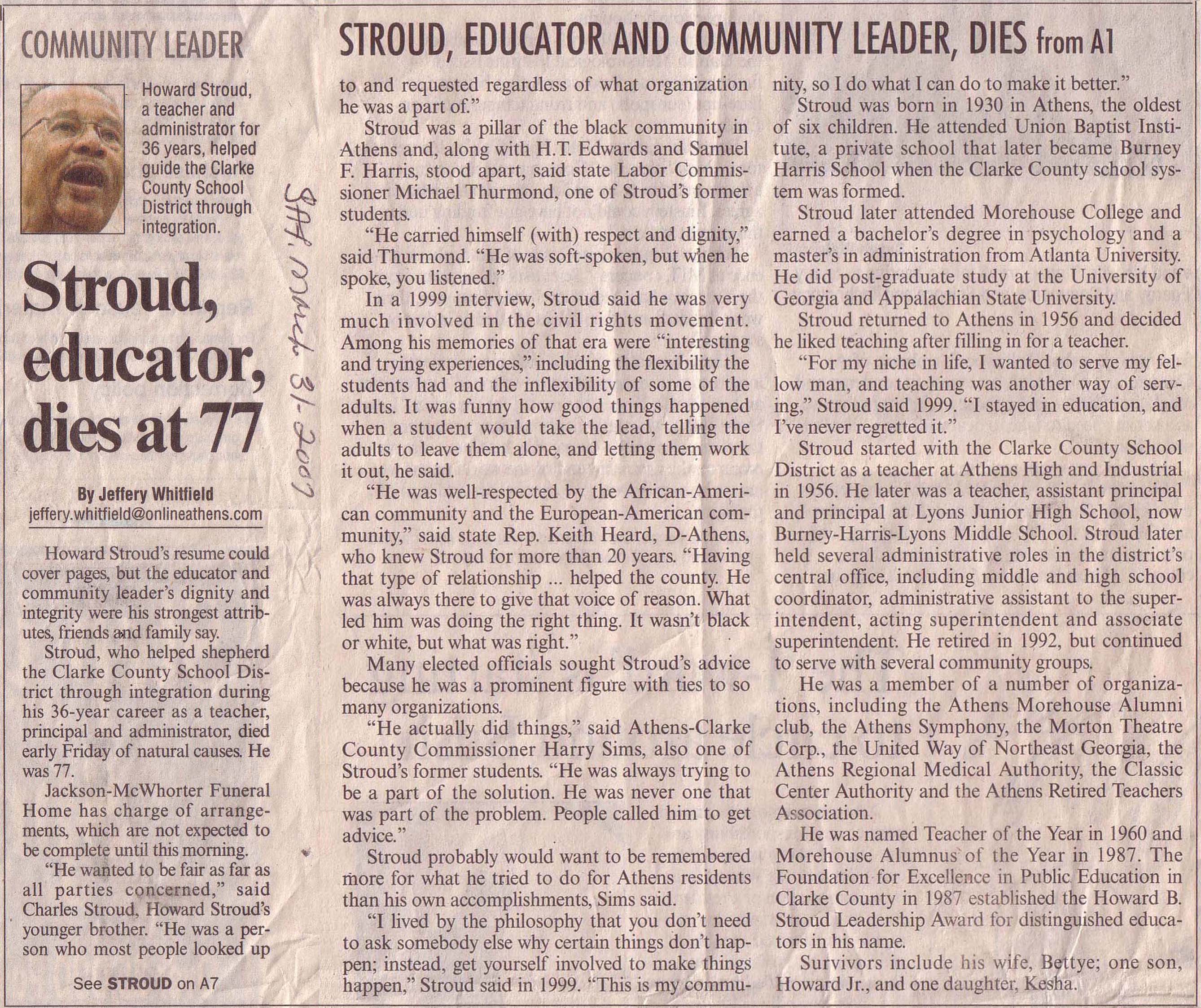 Howard B. Stroud Sr.,a teacher and administrator, helped guide the Clarke County School District though integration |