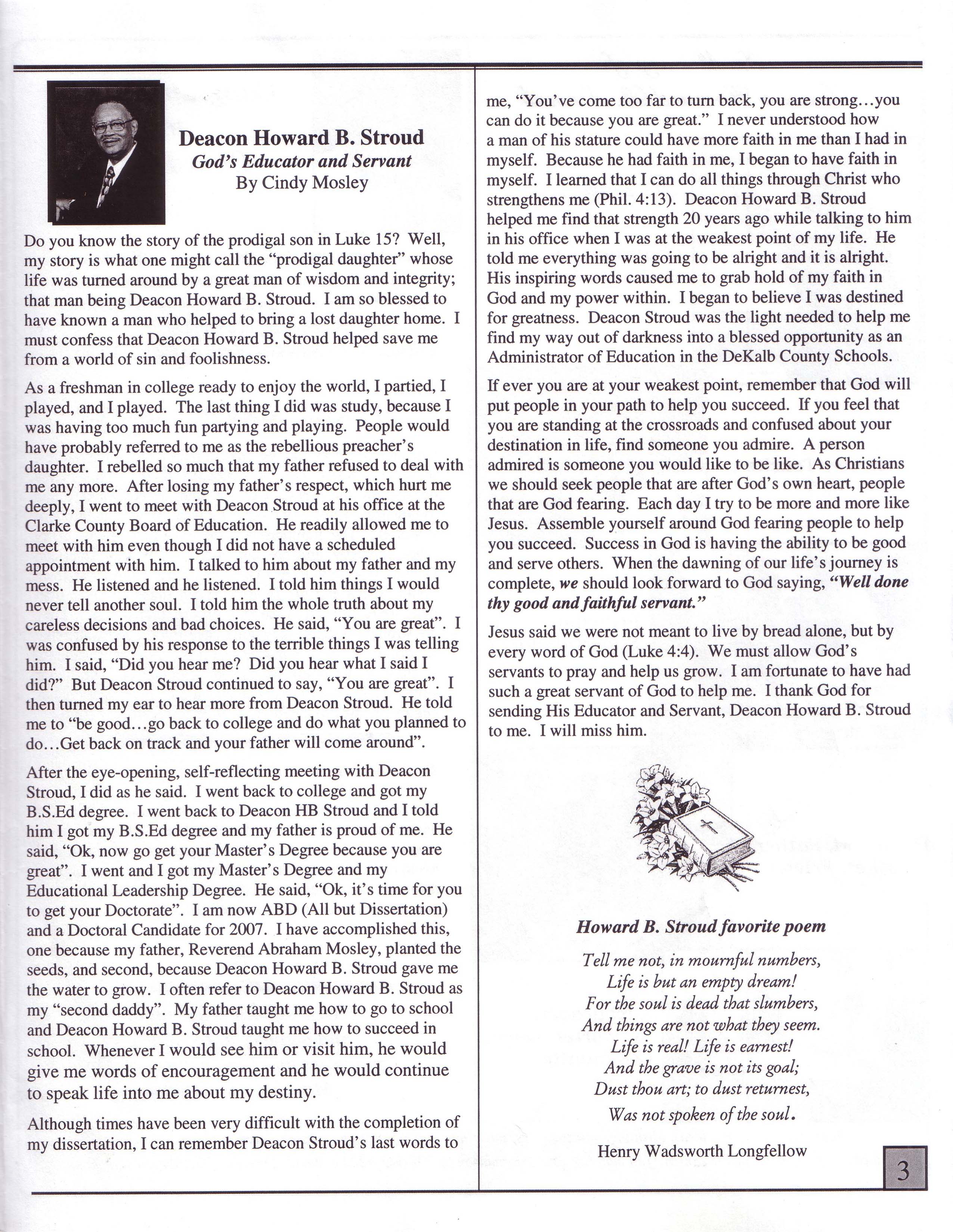 Deacon Howard B.Stroud, God's educator and servant. "He helped save me from a world of sin and foolishness." |