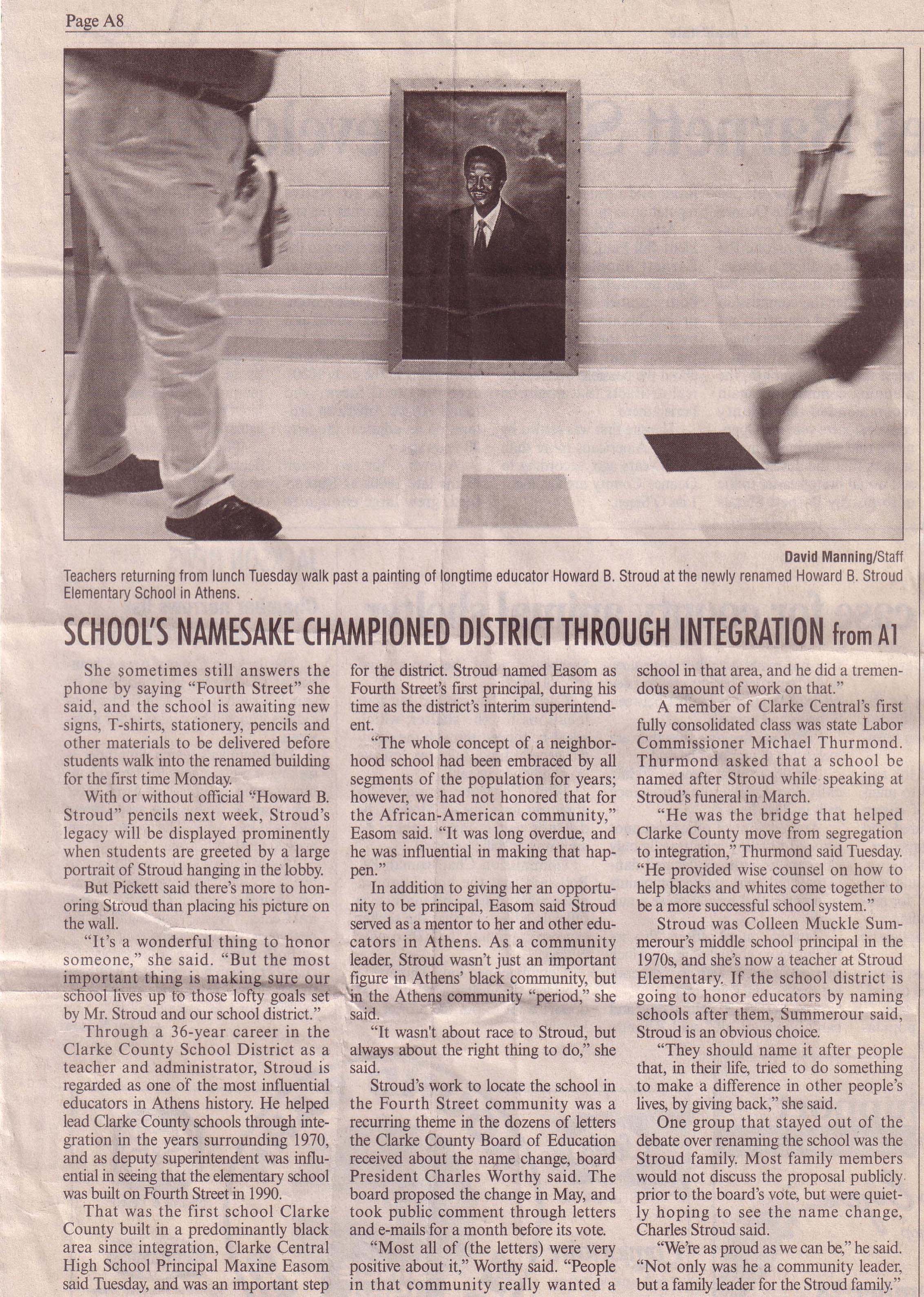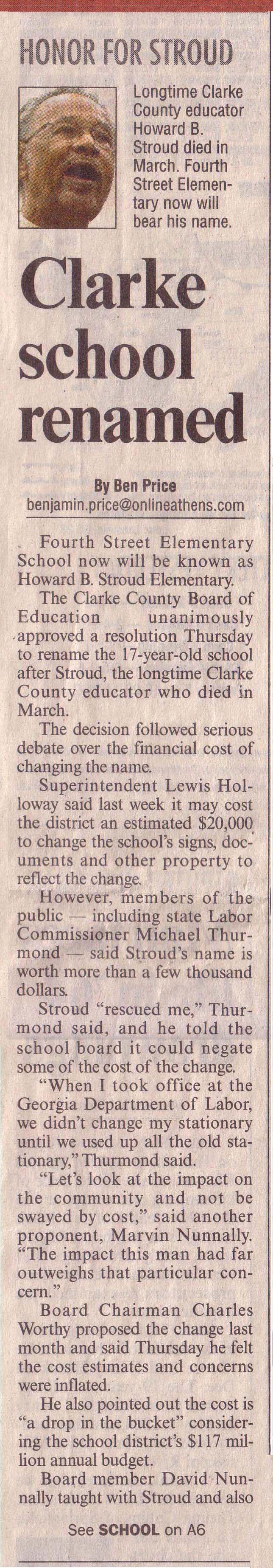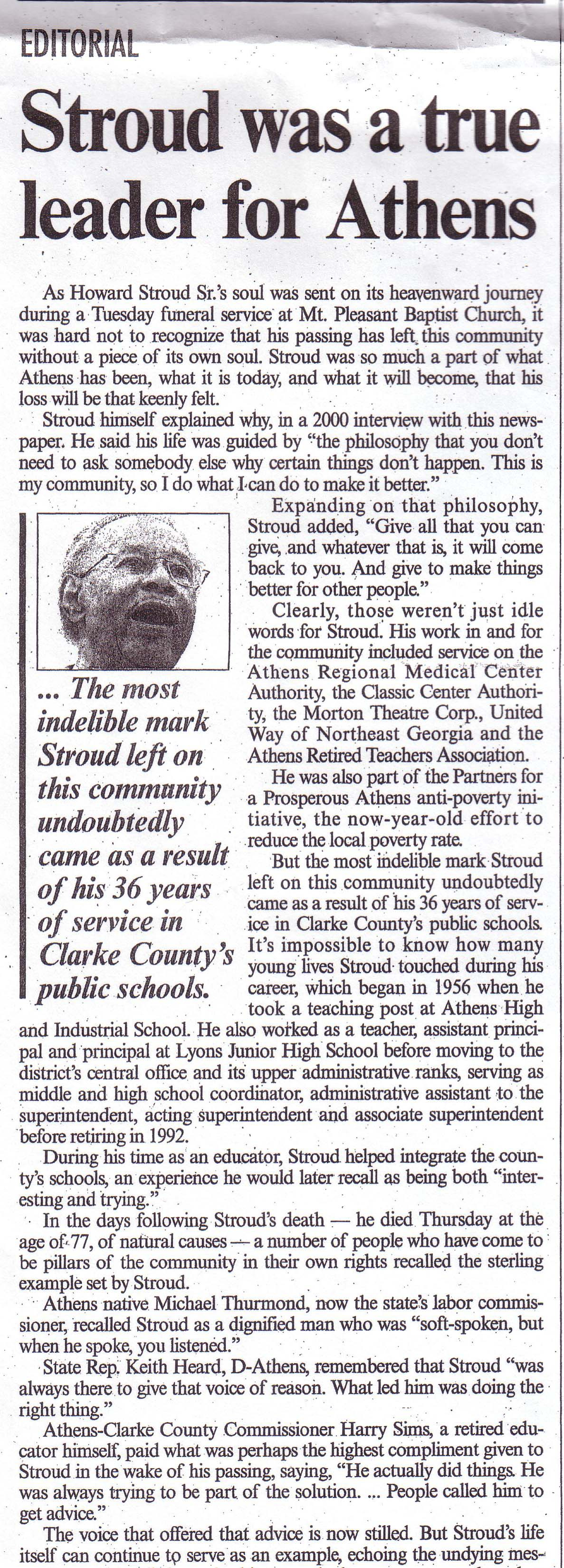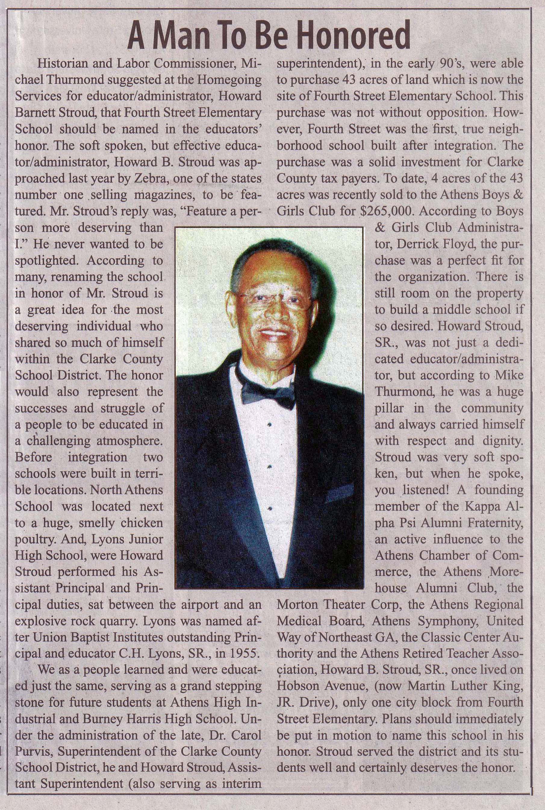 Renaming the school in honor of Mr. Stroud is a great idea for the most deserving individual who shared so much of himself within the Clarke County School District. |