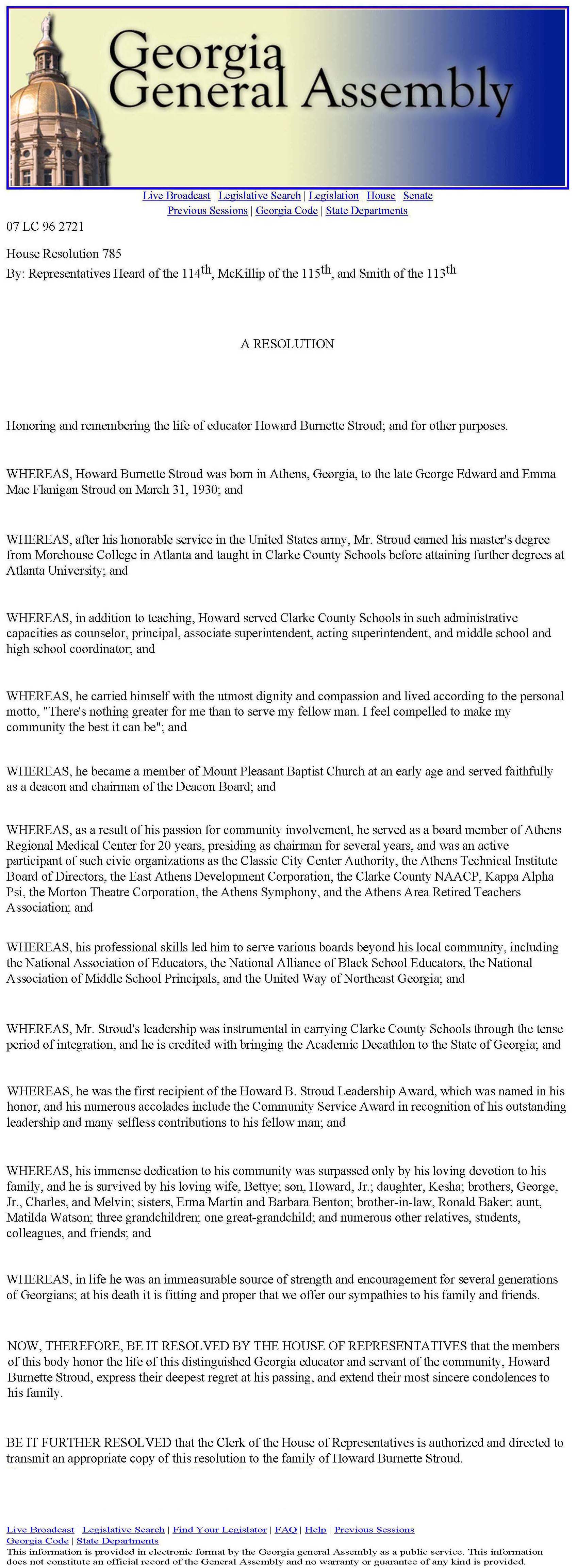 Georgia General Assembly Resolution |